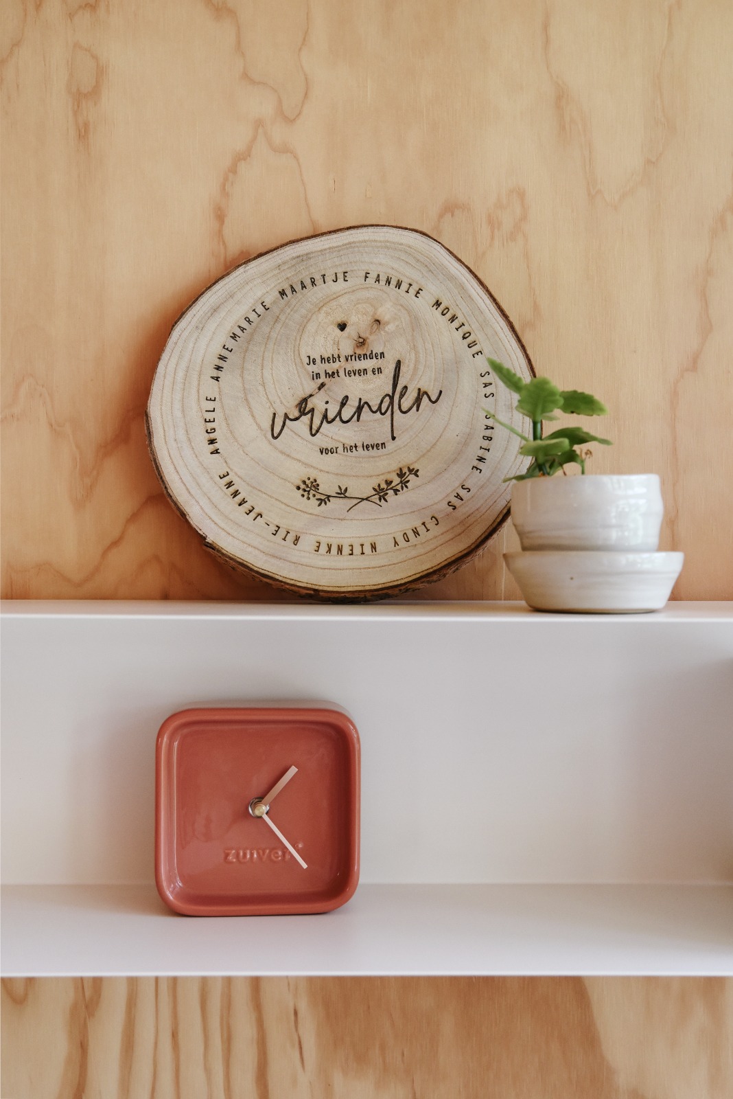 Mooi voor tegen de muur, maar ook als leuke plank op tafel.