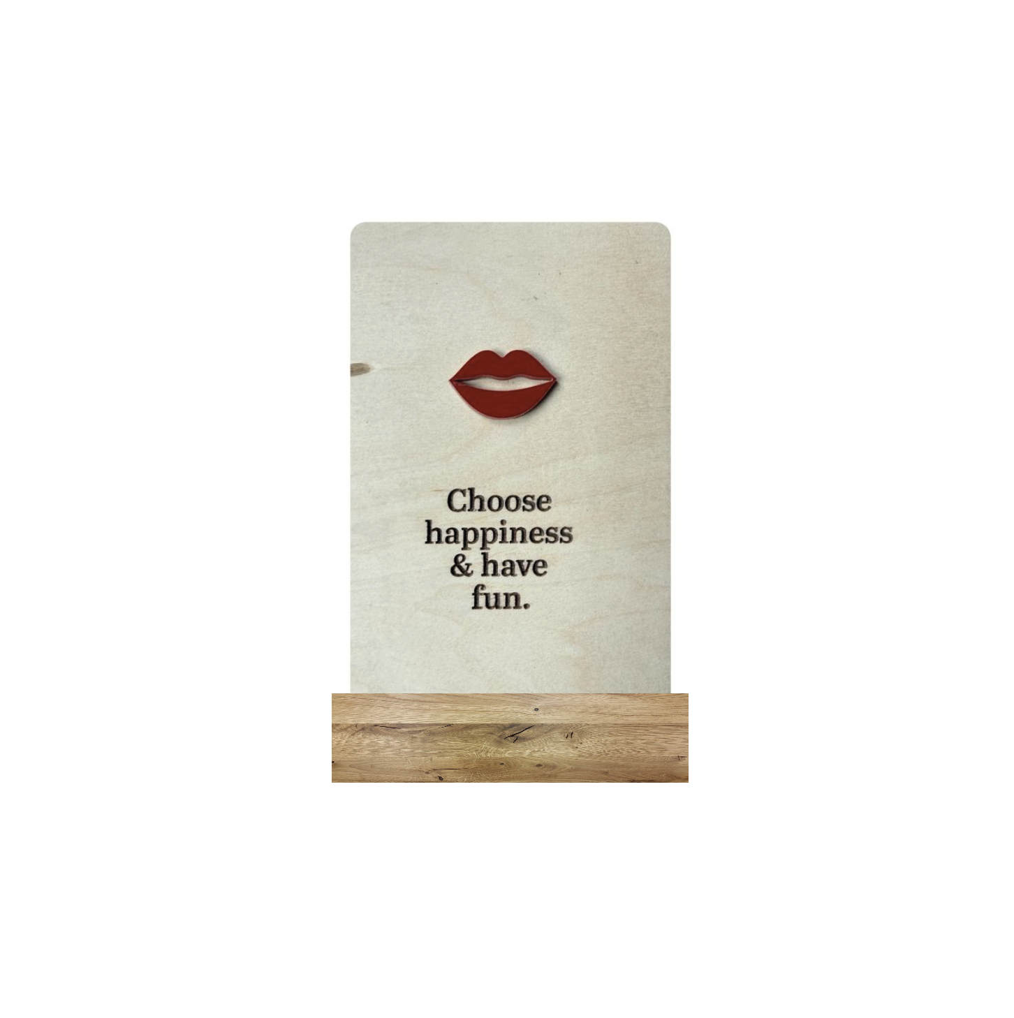 1x Houten kaart 10x15cm “Choose happeniss & have fun”