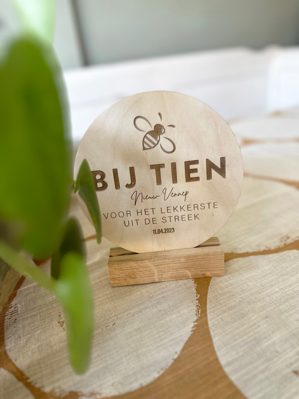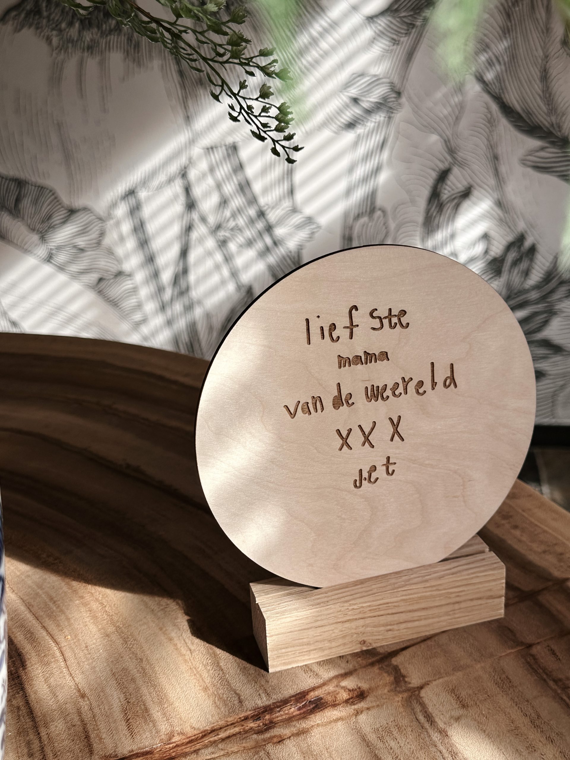 De hout cirkel is los verkrijgbaar er zit geen standaardje bij!