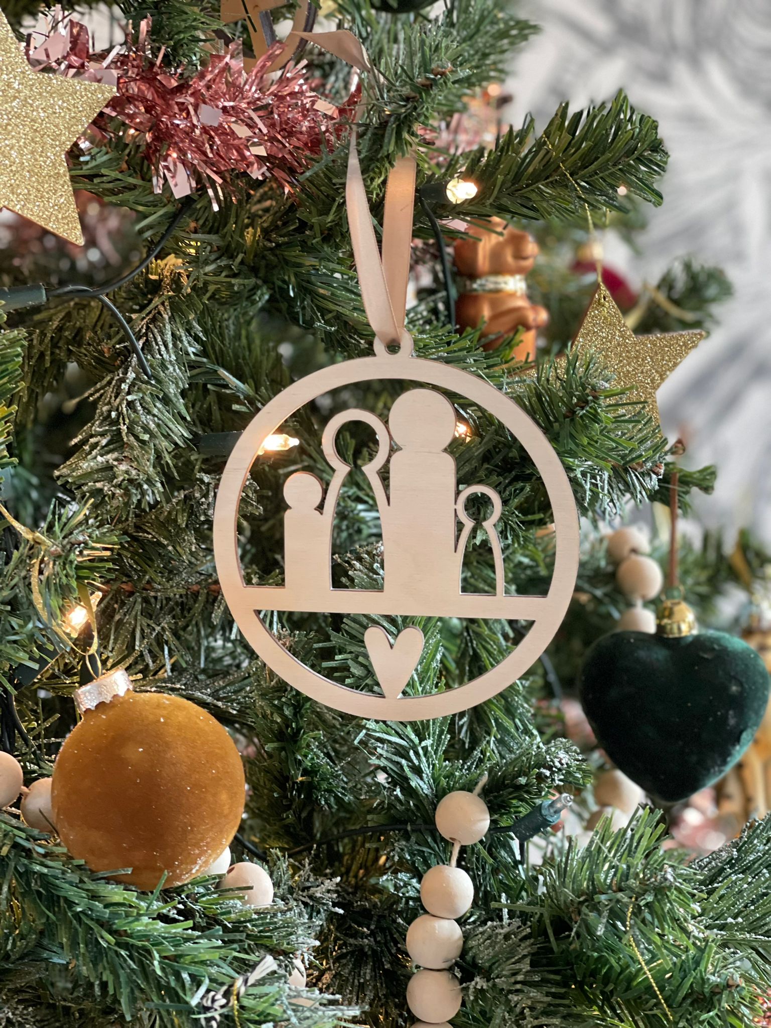 Zet jouw gezin in een bal voor aan de kerstboom.