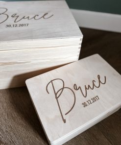 Het ontwerp zoals op de foto (Bruce) met je eigen naam en datum.