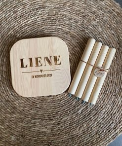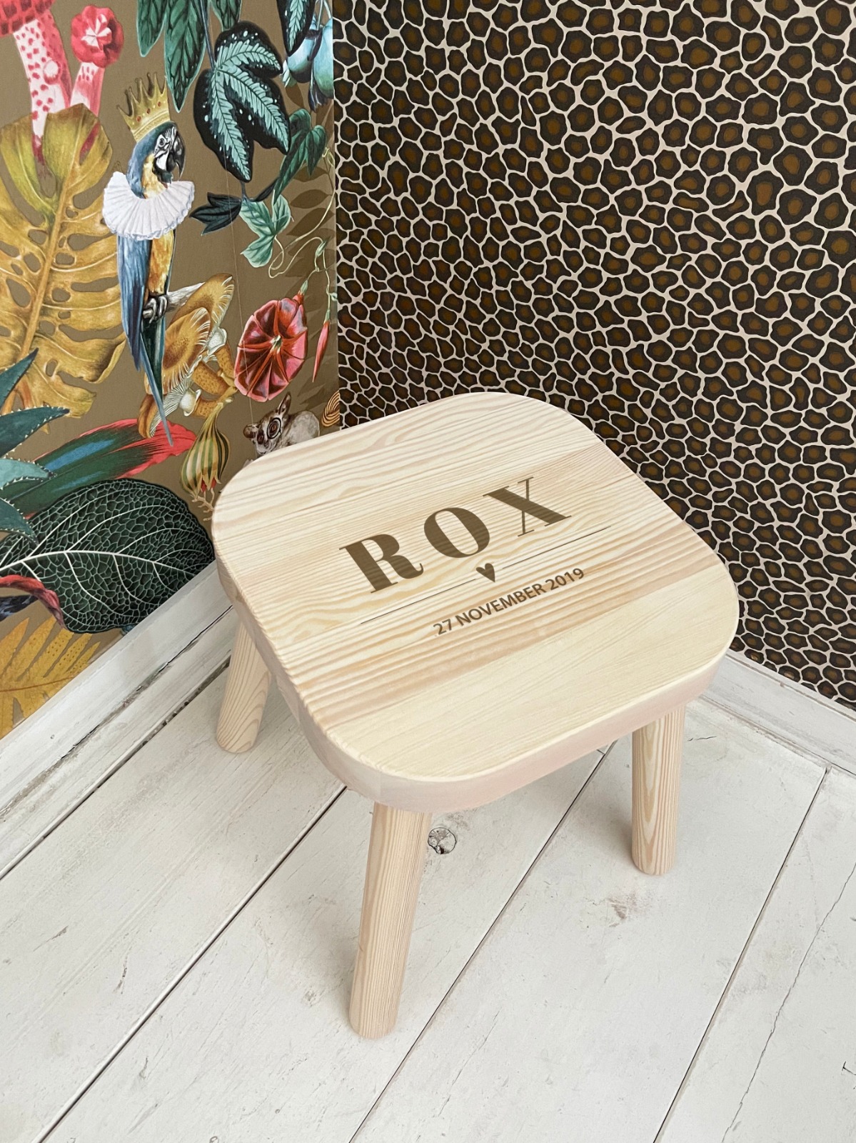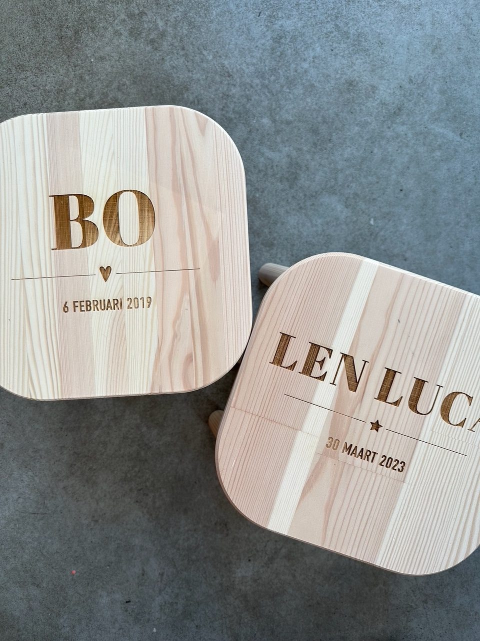Kinderkrukje gepersonaliseerd met naam en datum.