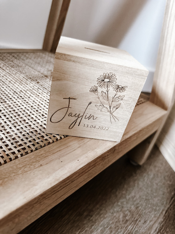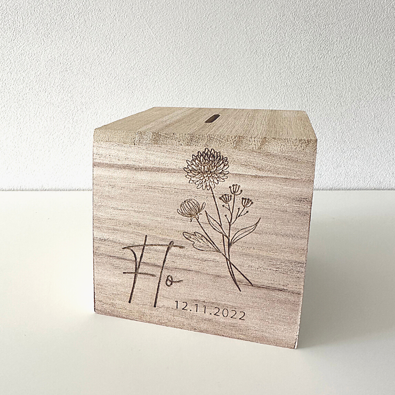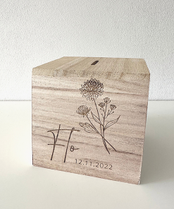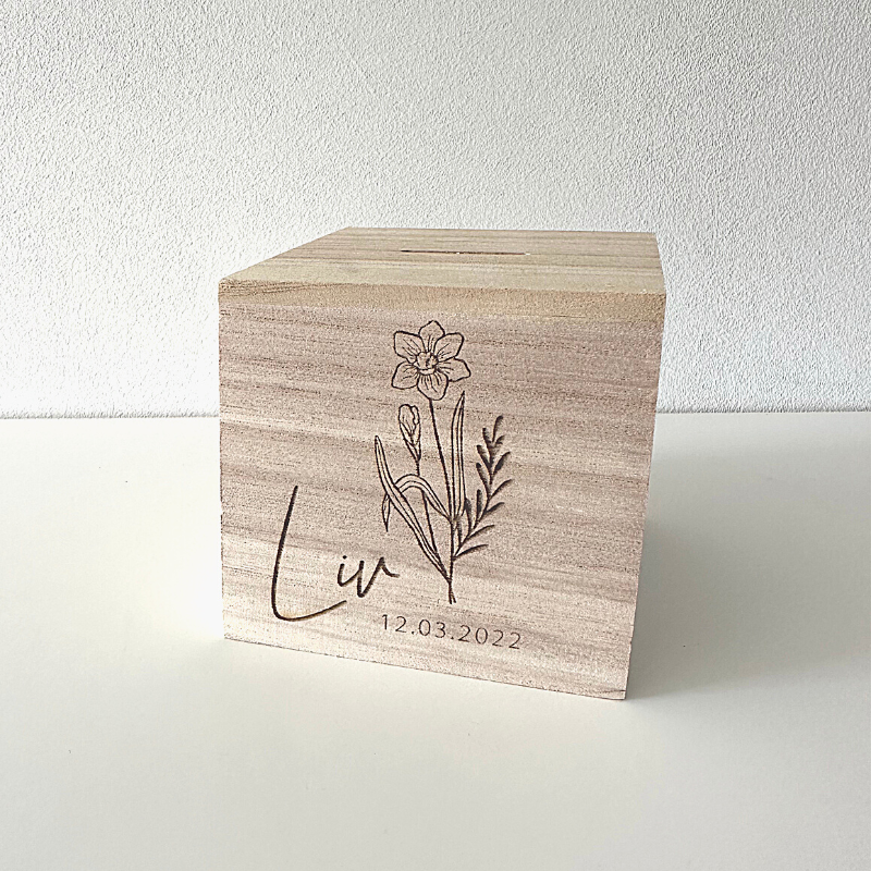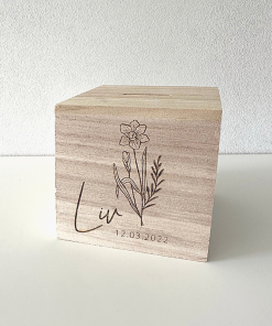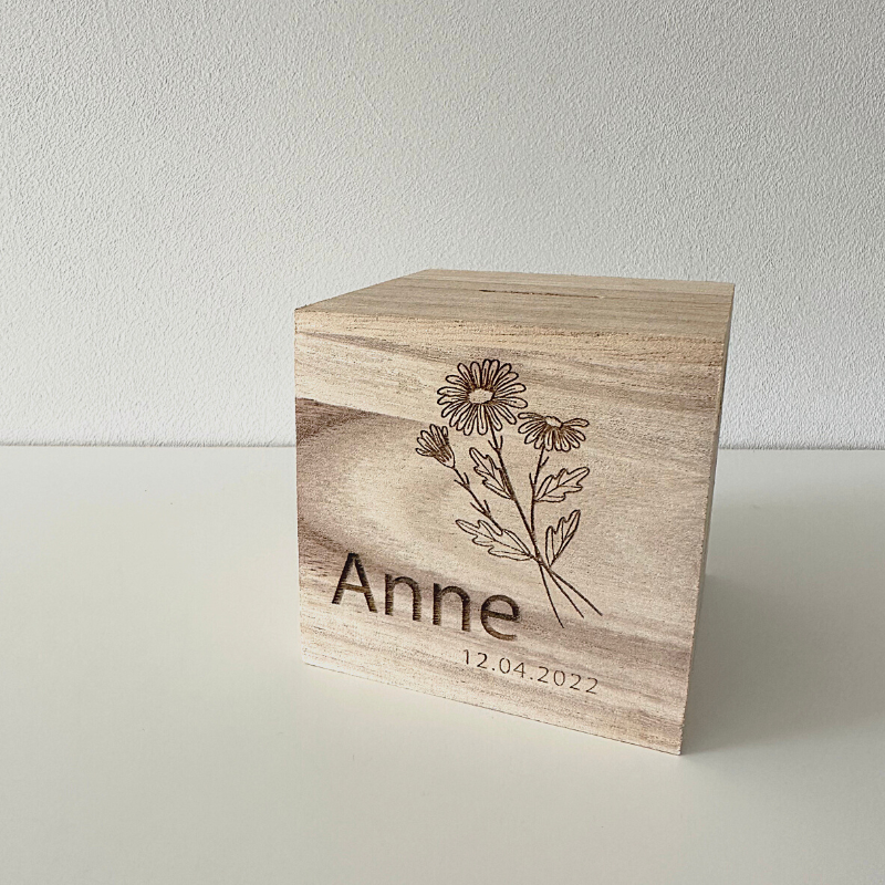 Kies je geboortemaand bloem en personaliseer je eigen spaarpot.