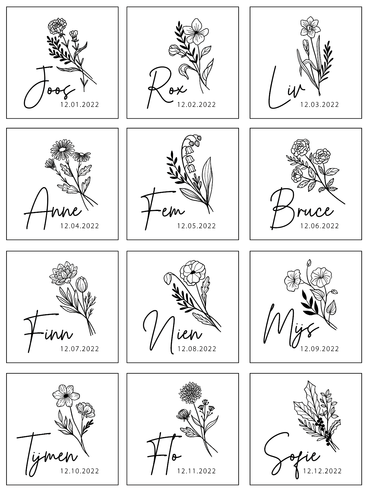 Bekijk bij de afbeeldingen welke bloem bij welke maand hoort.