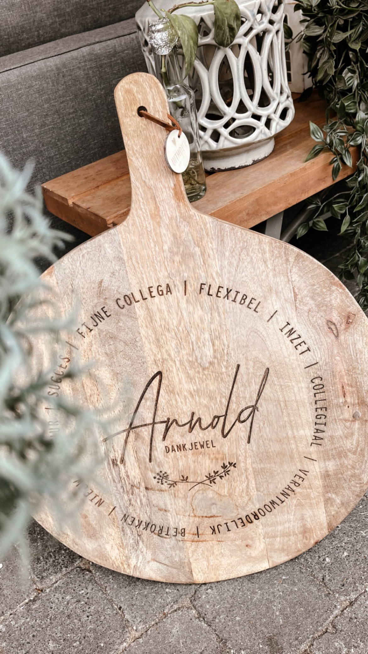 Robuuste Tapasplank gegraveerd met eigen tekst.
