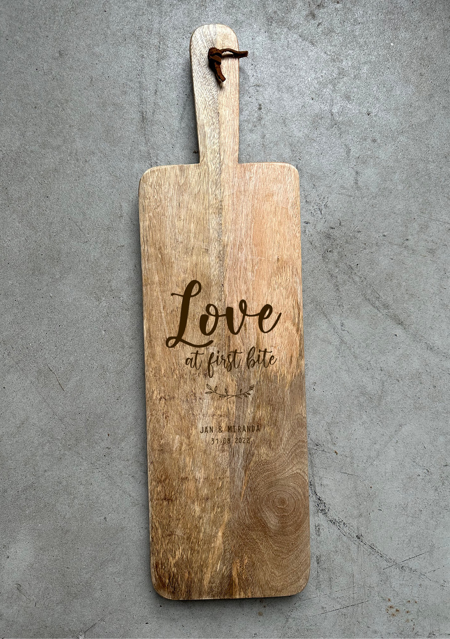 Robuuste Tapasplank gegraveerd met eigen ontwerp/logo.