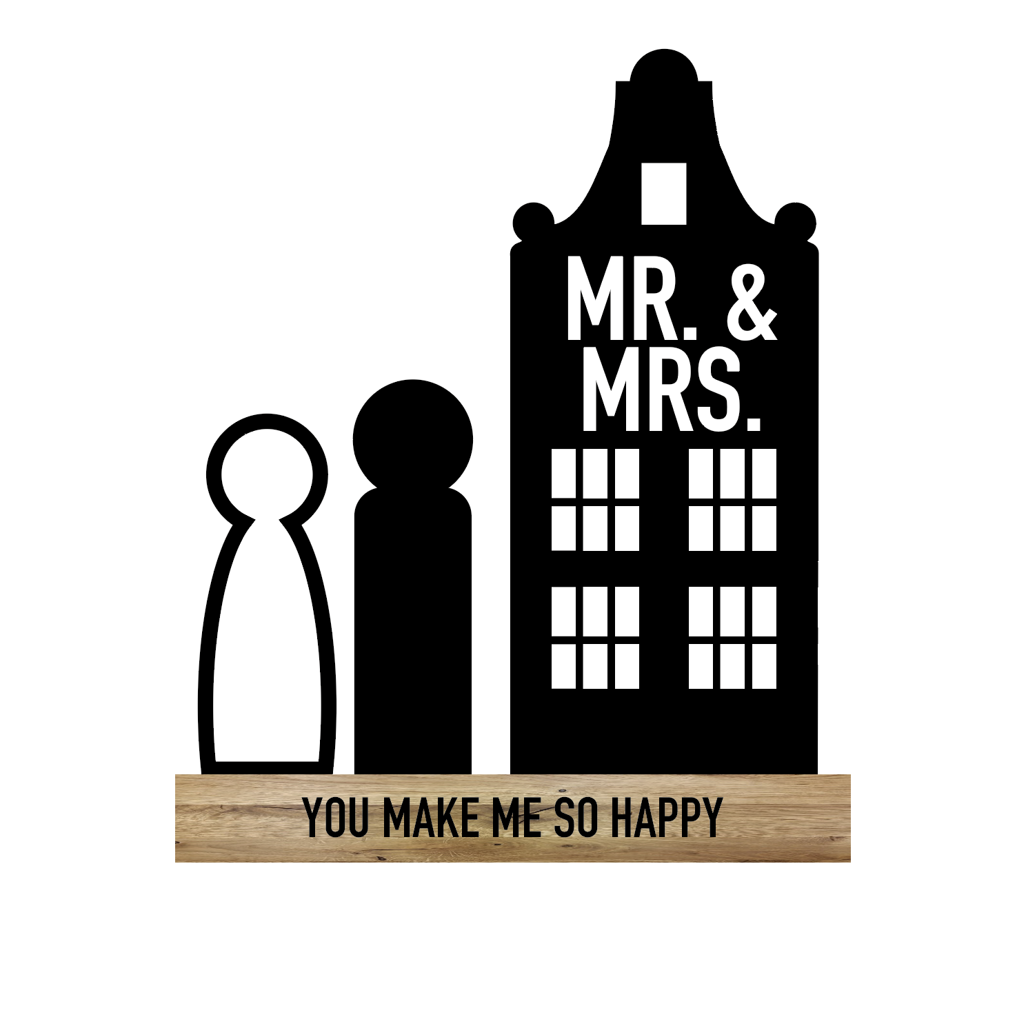 1x eiken balk 23cm 2 groef met tekst ” You make me so happy”