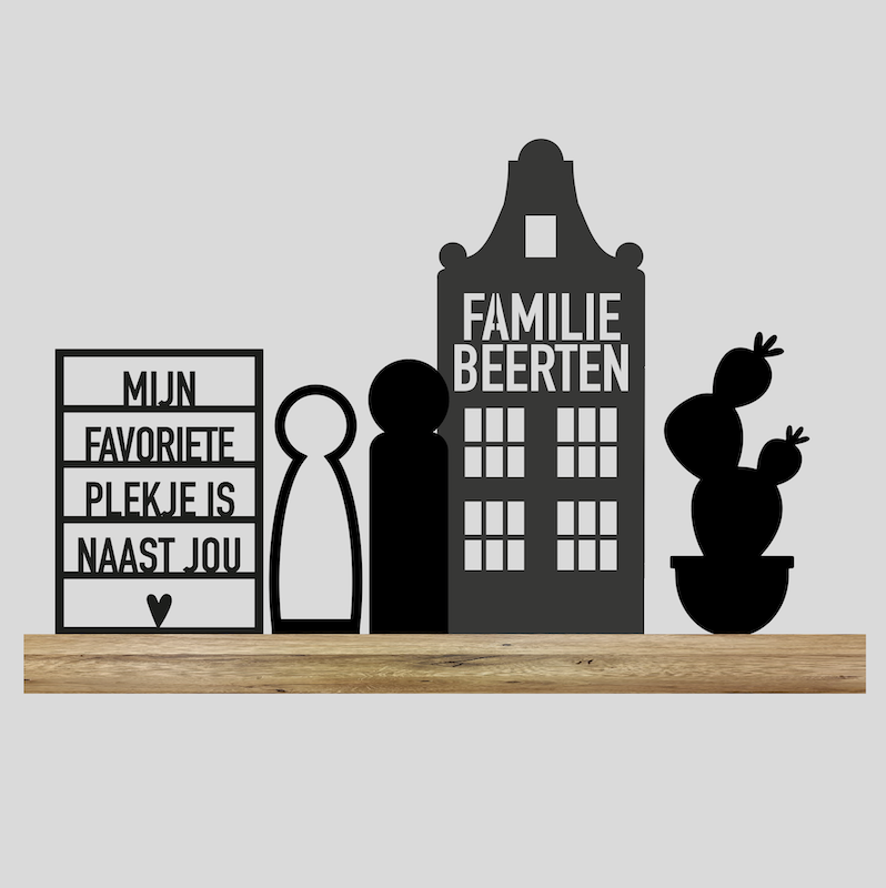 1x Huis (geef aan wat je erop wilt, Familienaam, woonplaats, huisnummer)
